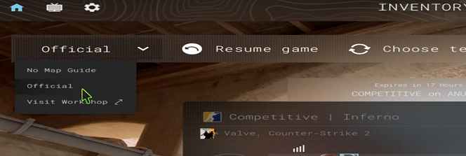 In Competitive and Retakes, limited map guides are available during the first five rounds of each half. So if you blank on a basic execute smoke early in the half, you can use the guide as a reminder instead of pretending you remember it and whiffing the lineup.