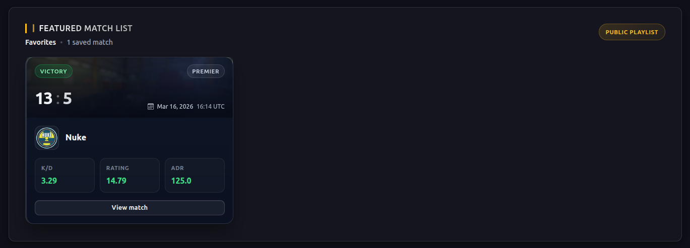 Thats why we created the posibility to add matches to your own personal "Playlists" called "My favorites". If you add a match to a favorite list, we will remove the tag that automatically deletes the 2D Demo Replay and demo file after 30 day. Meaning you can revisit you match whenever you like without worrying about storage on your own devices, or trying to keep track of which file belonged to which match.